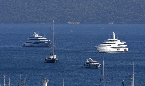 Muğla'nın Bodrum ilçesi açıklarına demirleyen, her biri milyonlarca dolar değerindeki mega yatlar ilgi çekti.