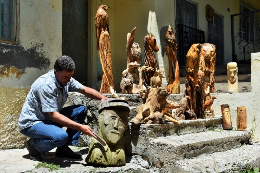 Muş'un Varto ilçesinde hayvancılıkla geçimini sağlayan Turabi Yoloğlu, boş zamanlarında dağlardan topladığı kurumuş ağaçları işleyerek farklı figürler ortaya çıkarıyor.
