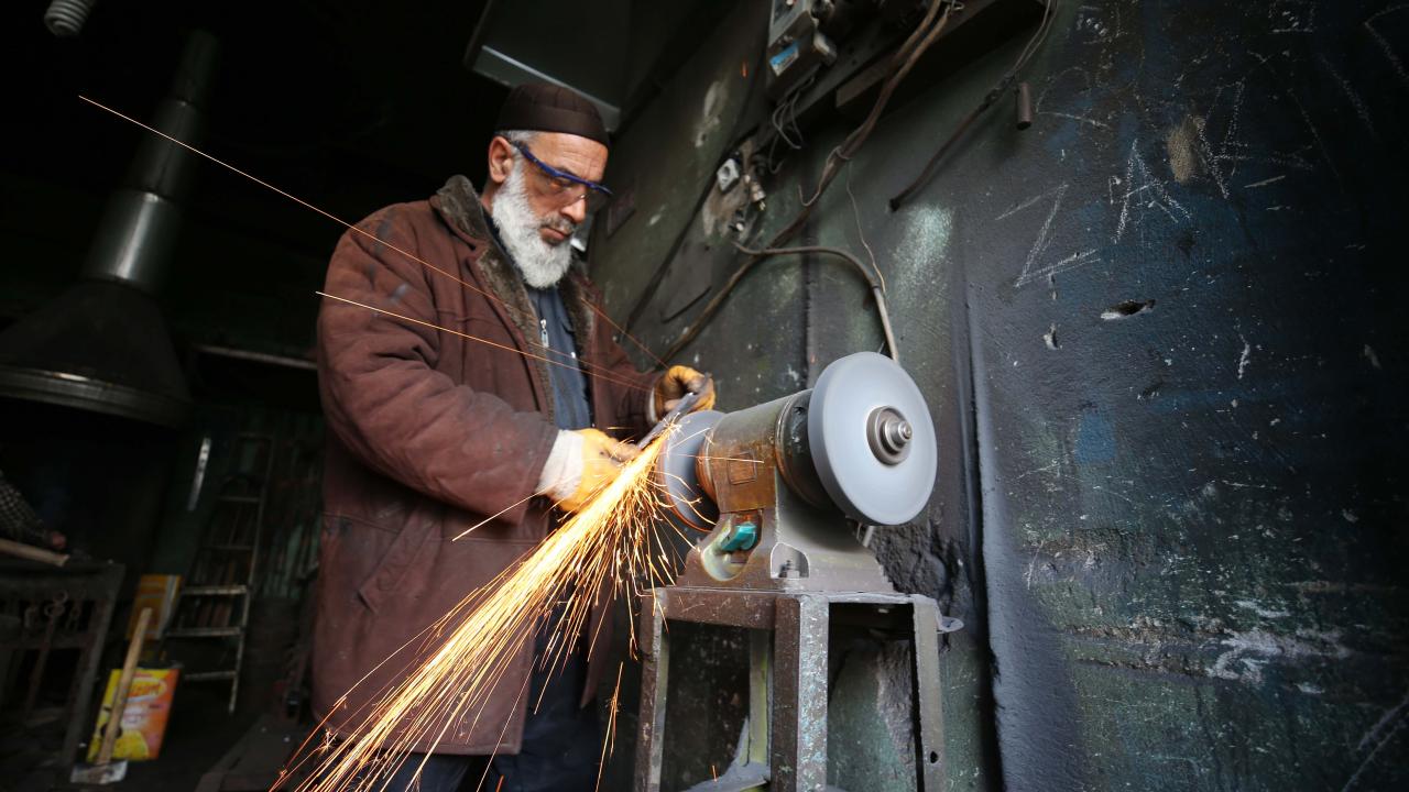 Günün ilk ışıklarıyla dükkanını açarak ocağını yakan Pınar, yaptığı balta, kazma, orak ve tarım aletlerini satarak ailesini geçindiriyor.