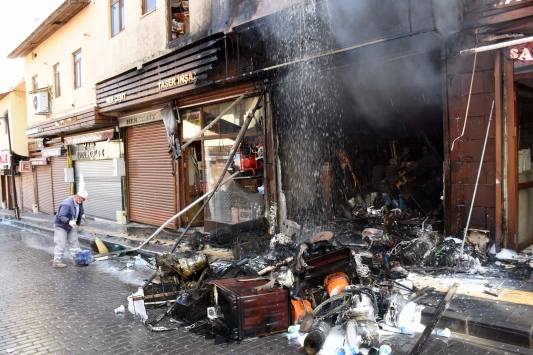 Yangın nedeniyle iş yerinde hasar oluştu.