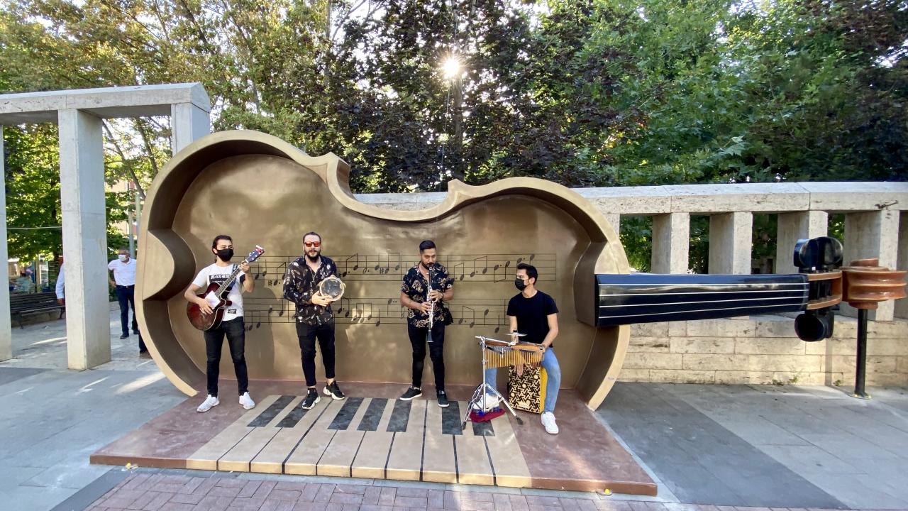 Ekicioğlu, burada gazetecilere yaptığı açıklamada, Anadolu Abdal müzik geleneğinin icrasında öne çıkan bağlama, davul, keman gibi enstrümanların şekillerinden oluşturulan müzik duraklarını, kentin işlek noktalarına yerleştirdiklerini anlattı.