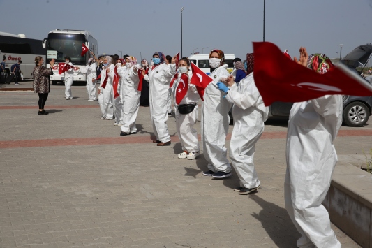 Sağlık görevlilerince kontrolden geçirilen vatandaşlar, otobüslerle memleketlerine uğurlandı.