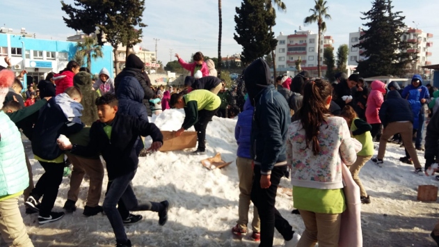 Öğrenciler, Belediye Başkanı Necip Topuz'a teşekkür ederek, kartopu oynayıp gönüllerince eğlendi.
