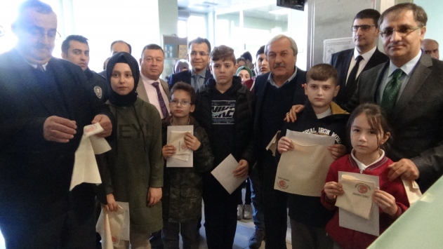 "Osmaneli sizinle" yazılı Lefke bezinden hazırlanan mendillerin içine konulan mektuplar, Kaymakam Naif Yavuz, Belediye Başkanı Münür Şahin, Milli Eğitim Müdürü Erhan Döş ve öğrenciler tarafından PTT şubesine teslim edildi.