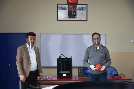 "Koronavirüsün Türkiye'de görülmesiyle birlikte bizler de sağlık çalışanlarına destek olmak amacıyla neler yapabileceğimizi öğretmen arkadaşlarımızla görüşüp, bir karara vardık. Özellikle 3 boyutlu yazıcı ve lazer kesiciden çıkardığımız ürünleri hastane yetkililerine gösterdik. Lazer kesiciden ürünler daha seri çıktığı için doktor arkadaşlar bu maskeleri tercih ettiler. Hastaneden 1000 tane maske siparişi aldık ve bunları yapıp, ücretsiz bir şekilde teslim edeceğiz."