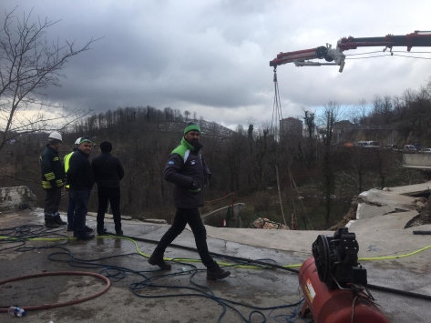 İlçe merkezi girişinde yol kenarında bulunan istasyonun alt kısmındaki duvarın dün çökmesi üzerine başlatılan çalışmalar bugün devam etti.