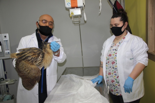Ünye Şefi Saygın Yıldırım, teslim aldığı balaban kuşunu ilçedeki özel bir veteriner kliniğine götürdü.