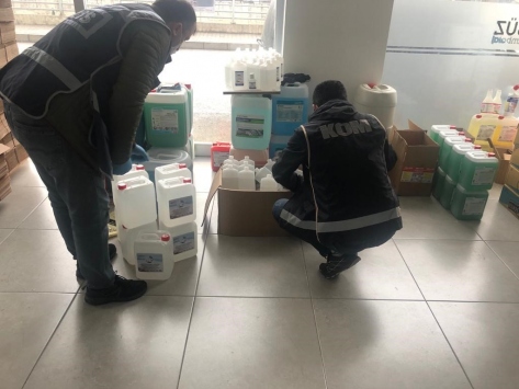 Operasyonda, yetkili mercilerden izin almaksızın üretilip stoklandığı tespit edilen 120 litre el dezenfektanı ve 650 litre dezenfektan yapımında kullanılan kimyasal maddenin yanı sıra 130 bin korucu maske, 20 çuval dikilmek için hazırlanmış maske kumaşı ve 100 bin maske teli ele geçirdi.
