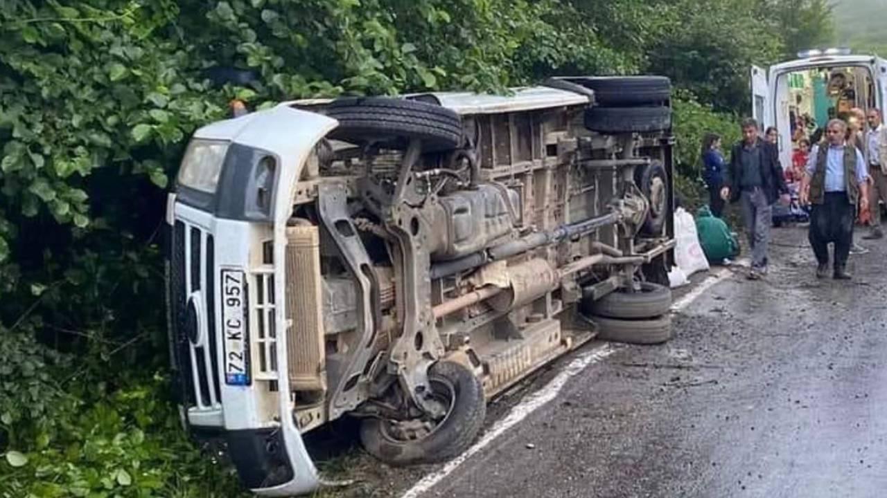 Gölköy ilçesinin Eğribel mevkisinde M.T'nin kullandığı minibüs, yolun kenarına devrildi.