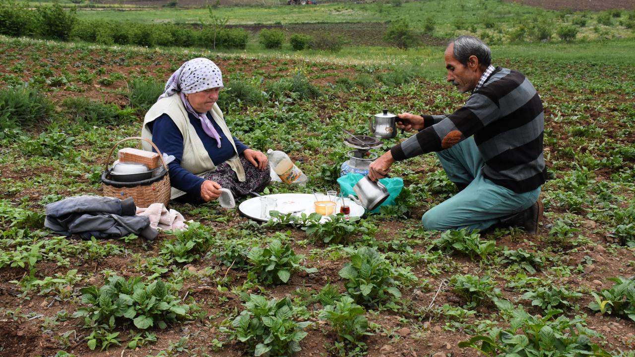 Tarlasında çalışan 65 yaşındaki Osman Çıtır, AA muhabirine, eşiyle önceden patates ektiklerini, şimdi ise çapalama işlemini yaptıklarını söyledi.