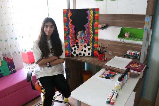 Koronavirüs nedeniyle evden çıkamadıklarını belirten Nisa Beren Horan, "Bugünlerde tuval çalışması yapıyorum. Kampanyayı görünce ben de destek olmak istedim. Tabloyu satarak elde ettiğim parayla bağışta bulundum." dedi.