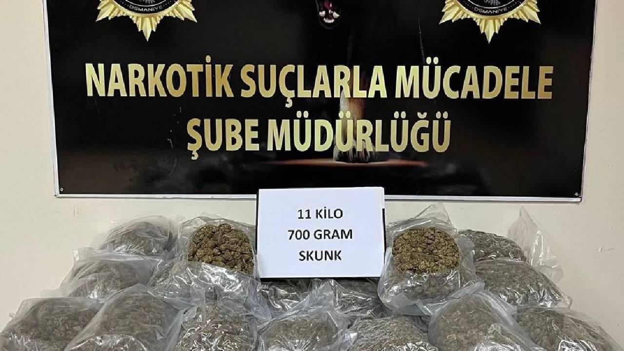 Araçta narkotik köpeğiyle yapılan aramada, 11 kilo 700 gram uyuşturucu bulundu.