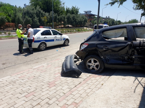 Çarpışmanın etkisiyle savrulan otomobil, yol kenarındaki bir iş yerinin önündeki demir direğe çarparak durabildi.