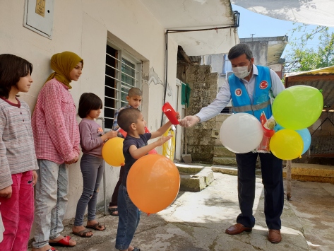 Recep Çeri, AA muhabirine yaptığı açıklamada, hayırseverlerin de desteğiyle hazırladıkları hediyeleri çocuklara ulaştırdıklarını belirterek, "Yeni tip koronavirüs tedbirleri kapsamında dışarı çıkamayan çocuklara bayrak, çikolata, balon gibi çeşitli hediyeler verdik. İnşallah bu günleri atlatır, daha güzel günlere kavuşuruz diye ümit ediyoruz. Herkes evde kalsın, sağlıcakla kalsın." diye konuştu.