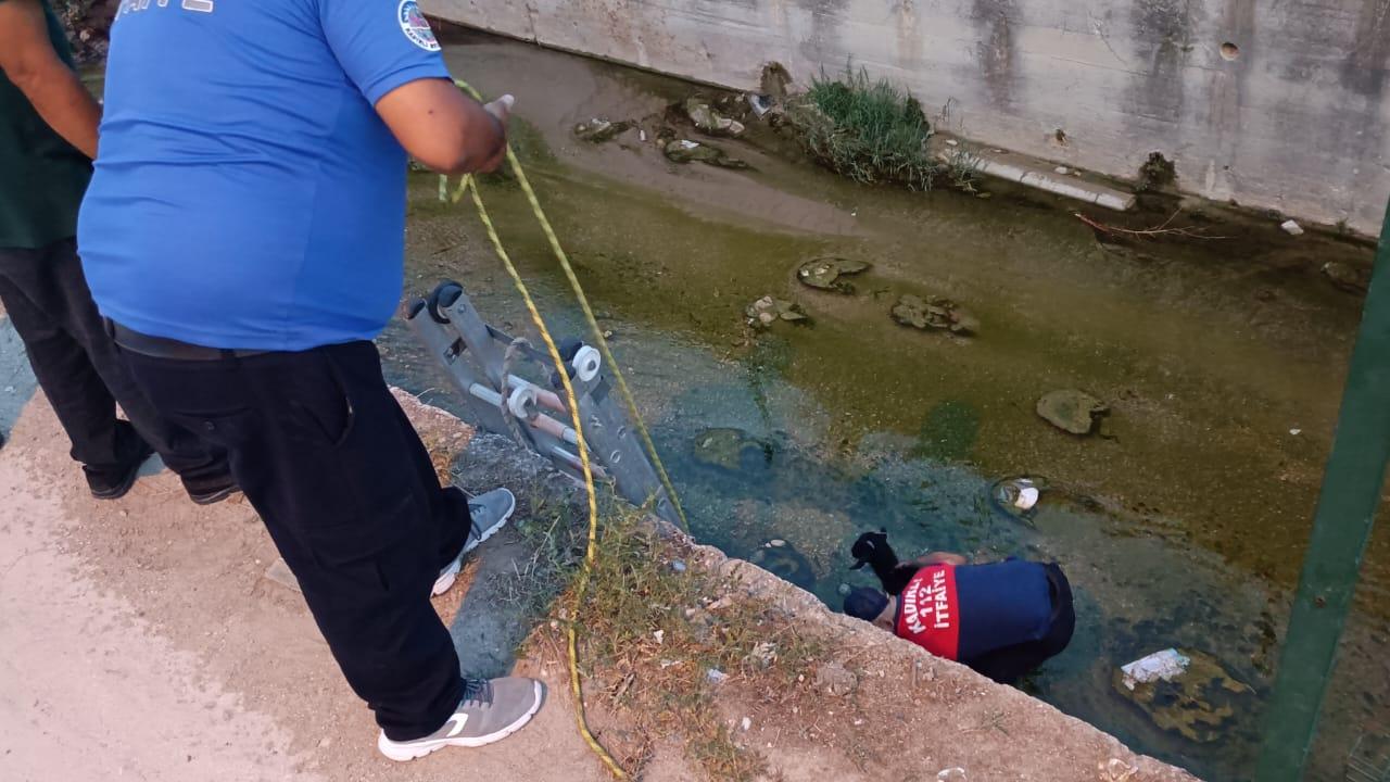 Olay yerine gelen ekip, merdiven yardımıyla oğlağı dere yatağından çıkartarak sahibine teslim etti.