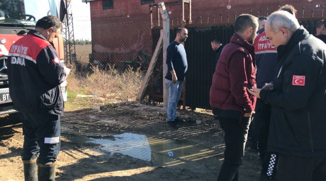 Çiftlikte çalışanlar, daha önce bölgedeki barakada kalan Suriyeli ailenin, dört gündür süren şiddetli yağış dolayısıyla çiftliğe geldiğini ve geçici olarak burada konakladığını belirtti.
