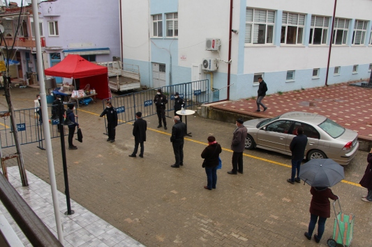 Koronavirüs ile mücadeledeki yeni tedbirler kapsamında Pazaryeri ilçesinde 2 kontrol noktası oluşturularak pazar alanına vatandaşlar sırayla alındı.