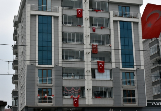 Bayram coşkusunu eve taşımak isteyen bazı çocuklar ve vatandaşlar, Samsun'da pencerelerini Türk bayrakları ve Atatürk posterleriyle donattı.