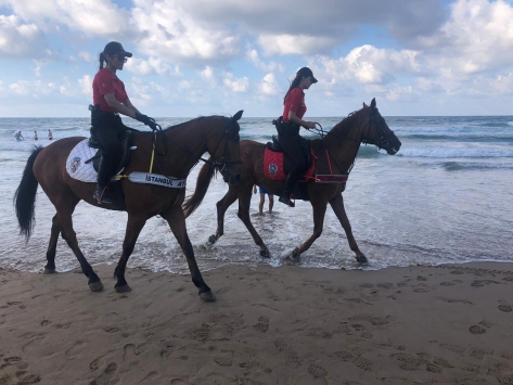 4 kişilik atlı tim ekibi, Ayazma ve Uzunkum plajlarında devriye yaparak denetimlerini sürdürüyor. Atlı polis timleri, merkeze uzak ve araç girişi olmayan noktalarda, asayiş olaylarının önüne geçmek için devriye görevi yapıyor. Atlı polisler vatandaşların yoğun ilgisiyle karşılaşıyor.