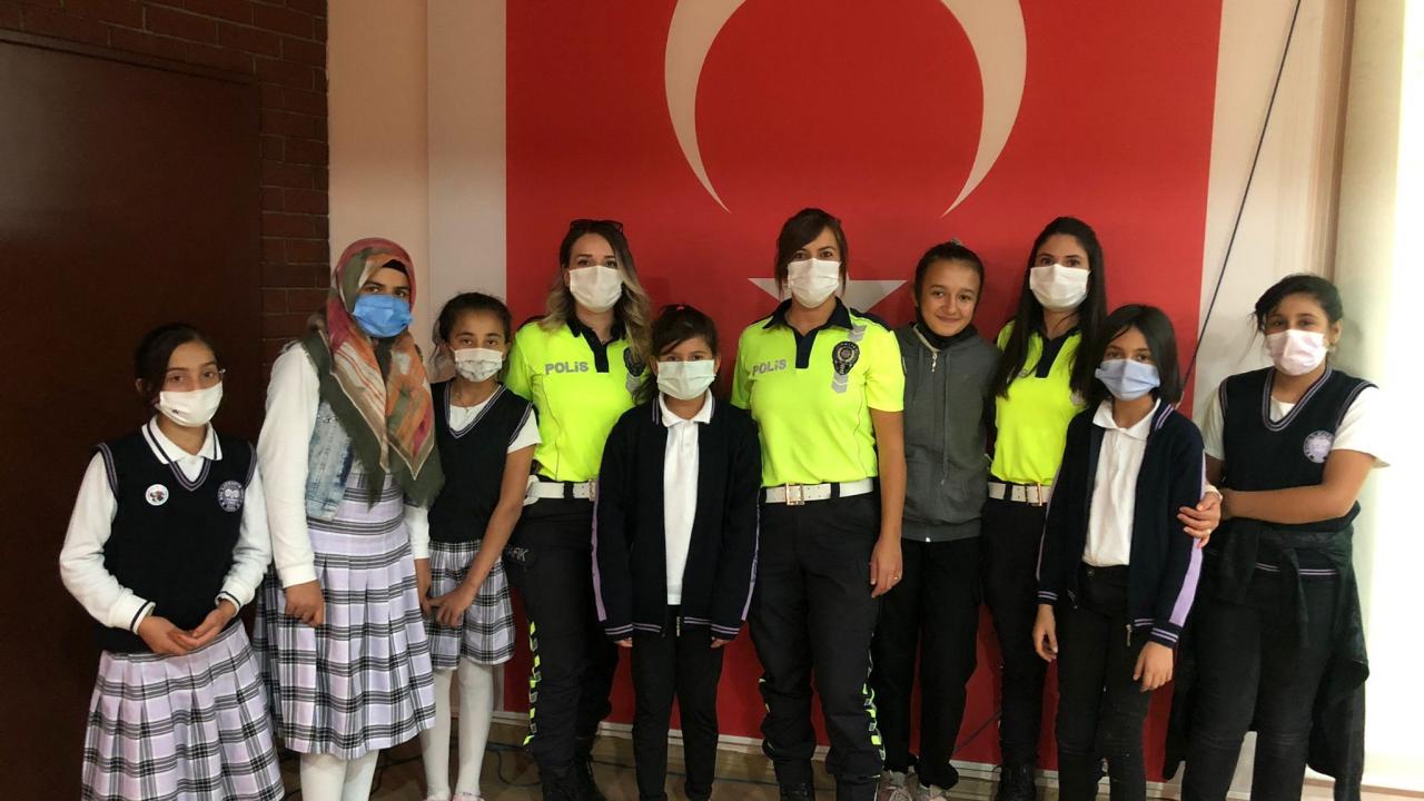 Polis ekiplerince şehrin farklı noktalarında araç sürücülerine ve yayalara trafik kuralları hakkında bilgilendirme yapıldı.