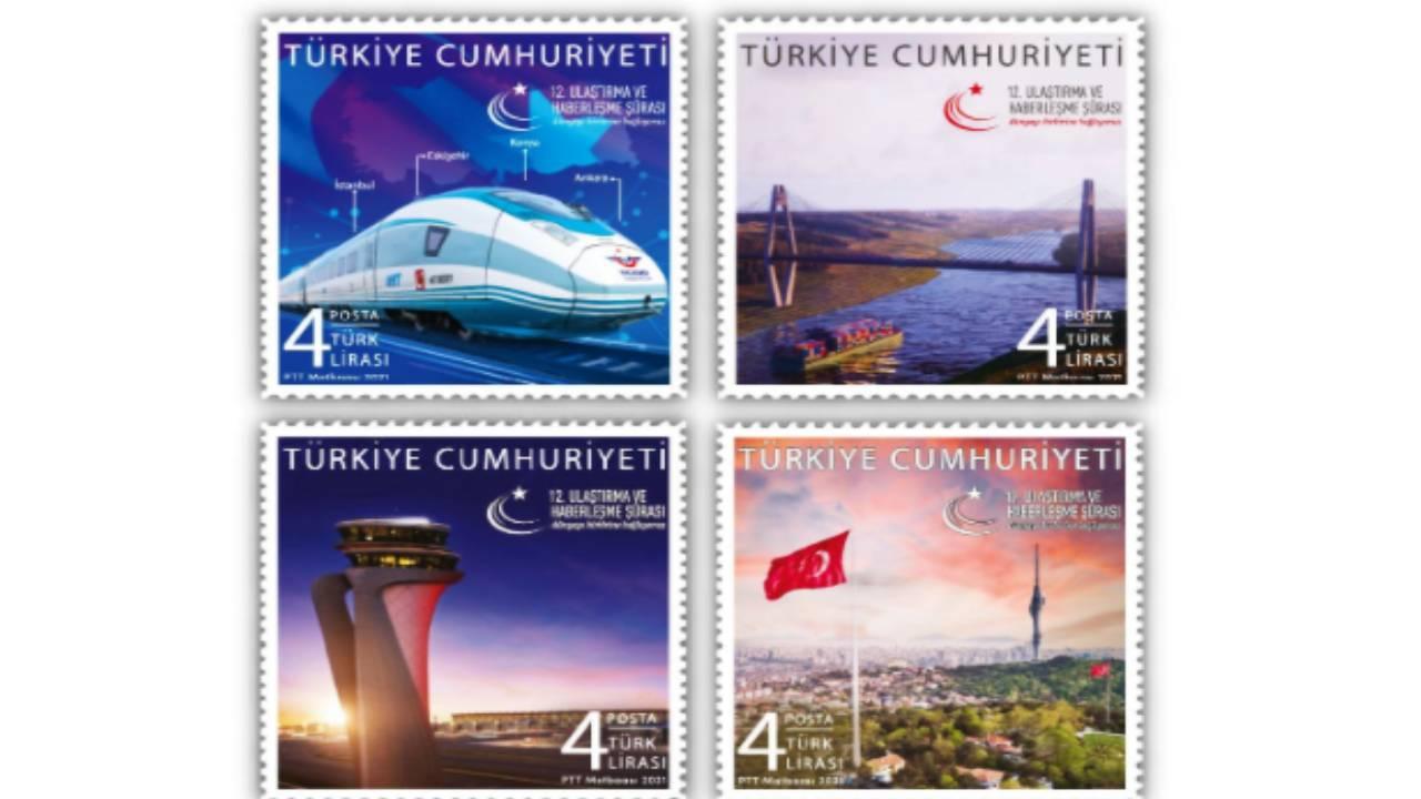 "12. Ulaştırma ve Haberleşme Şurası" konulu 4 değerli anma pulu, ilk gün zarfı ile tek değerli blok şeklinde hazırlanan anma pulu kullanıma sunuldu.