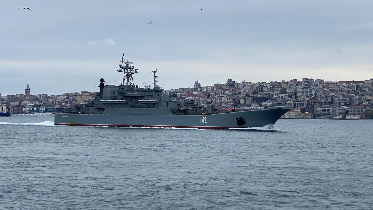 Rus Karadeniz donanmasına ait 142 borda numaralı 'Noboyepkacck' adlı savaş gemisi, İstanbul Boğazı'ndan geçti. Rus Savaş gemisine Türk Sahil Güvenlik botu eşlik ederken geminin ön ve arka güvertesinde bulunan can yelekli askerler İstanbul Boğazı'nı seyretti.