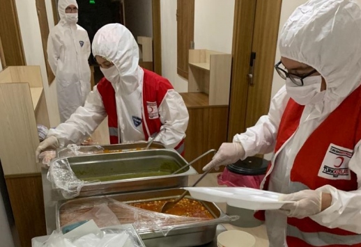 Türk Kızılay ekipleri, Gençlik ve Spor Bakanlığına bağlı Baharzade Feride Hanım Yurdu'nda 23 Nisan'dan itibaren karantinada tutulan vatandaşlarla yakından ilgileniyor.