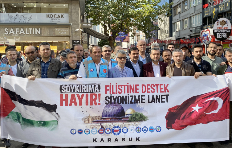Karabük'te Filistinlilere destek amacıyla basın açıklaması yapıldı.