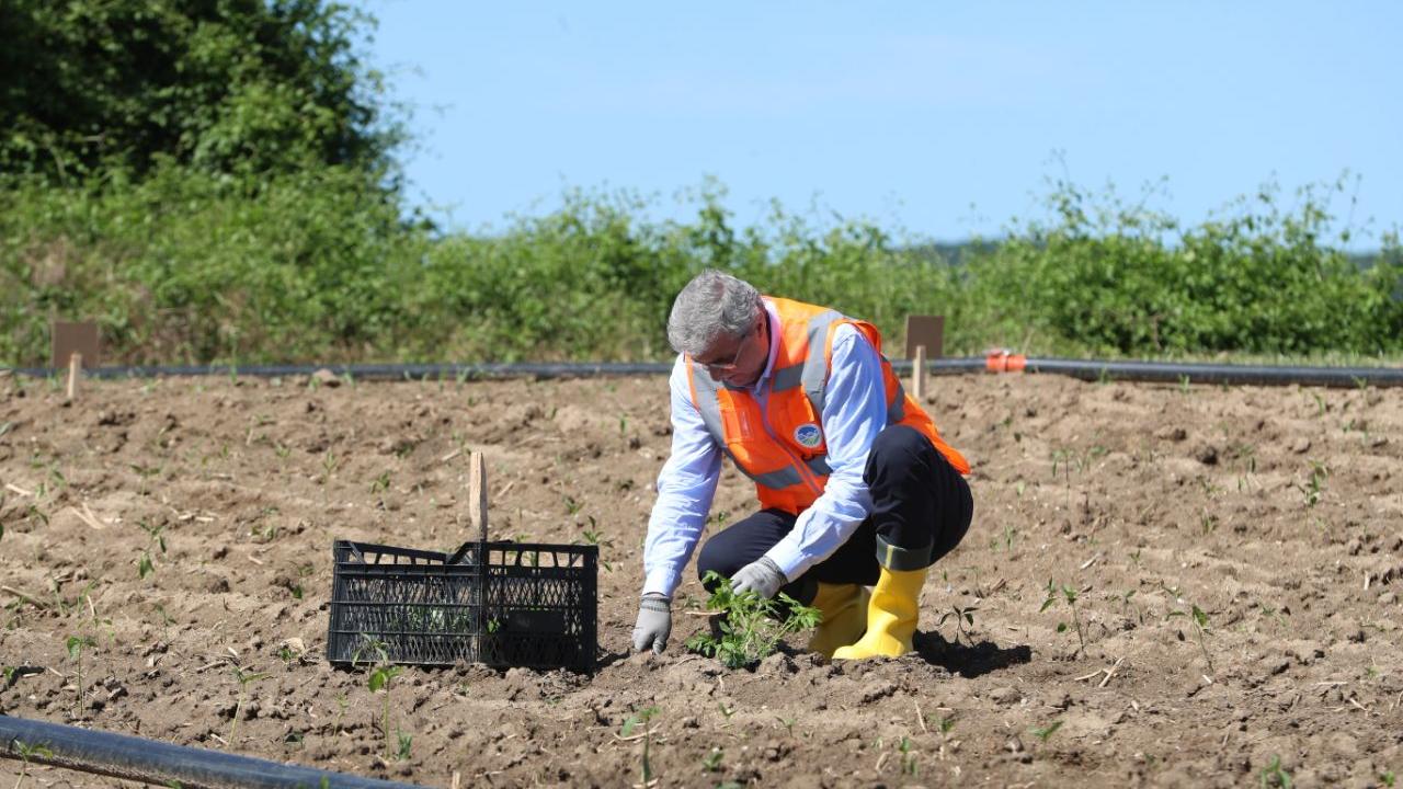 Karakamış Mahallesi'nde bulunan alanda ekim işlemini gerçekleştiren Büyükşehir Belediye Başkanı Ekrem Yüce, tarımsal projelere büyük önem verdiklerini belirtti.