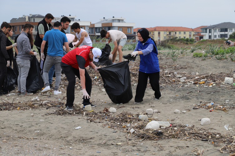 Kredi ve Yurtlar Kurumuna bağlı yurtlarda kalan yaklaşık 100 öğrenci, Yeni Mahalle sahilinde atık toplayarak temiz çevrenin önemine dikkati çekti.