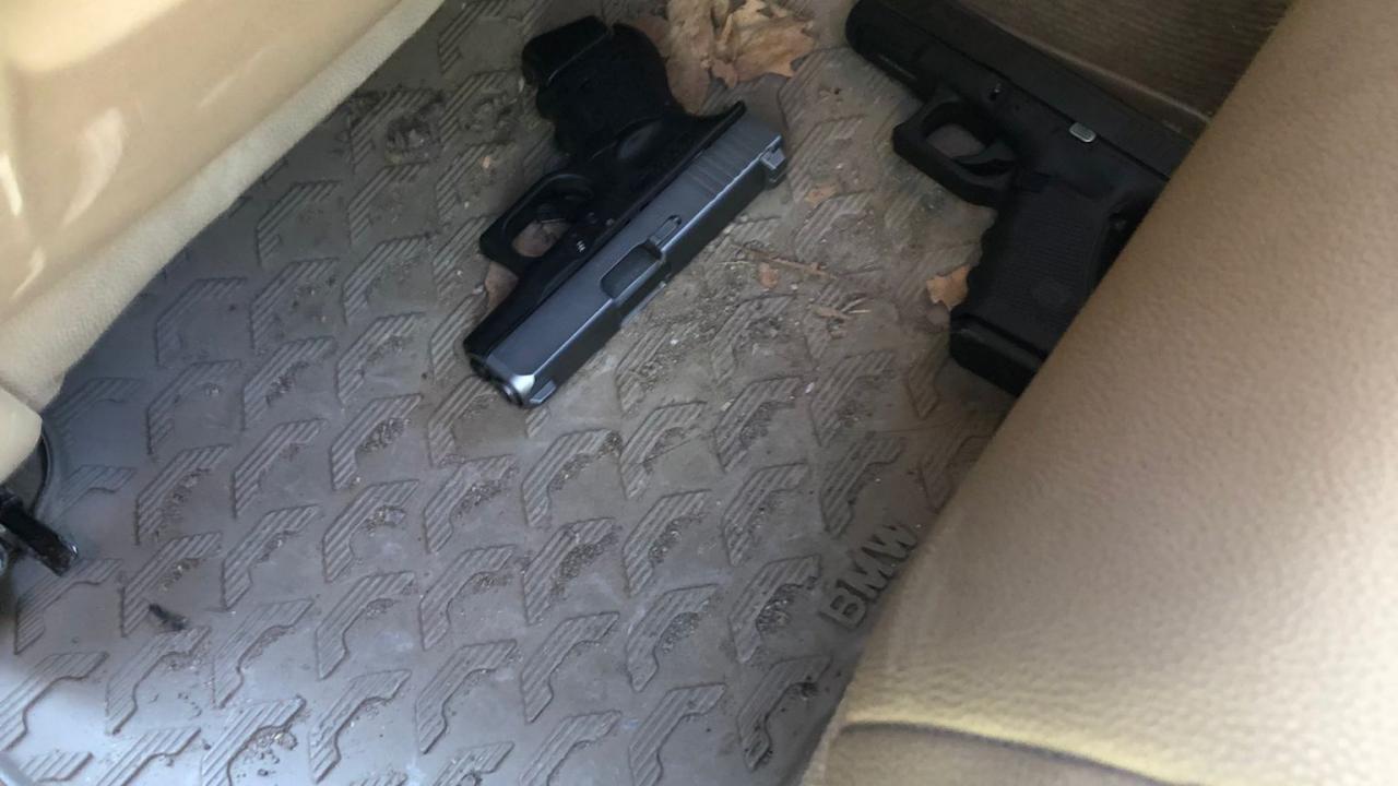 Araçta yapılan aramada, iki ruhsatsız tabanca ve 23 fişek ele geçirildi.