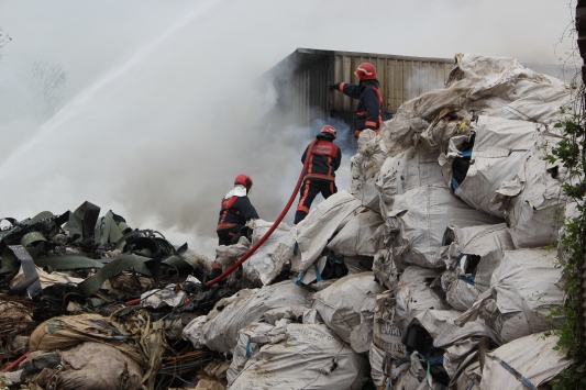 Sakarya'da Bekirpaşa Mahallesi D-100 kara yolu yanındaki geri dönüşüm tesisinde yemek molası verildiği sırada henüz belirlenemeyen nedenle yangın çıktı.