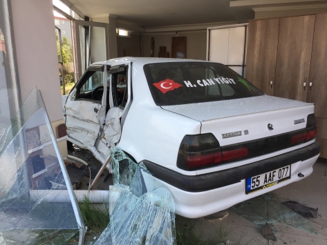 Murat Yiğit idaresindeki 55 AAF 077 plakalı otomobil, Çarşamba Mesleki ve Teknik Anadolu Lisesi kavşağında yol kenarında park halindeki bir otomobile çarptıktan sonra mobilya mağazasına girerek durabildi.