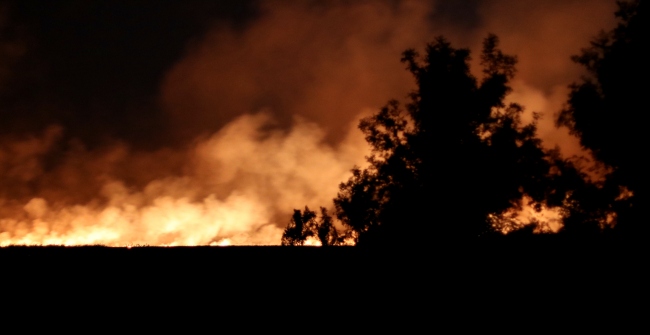 İlçe merkezine doğru ilerleyen alevlere, vatandaşların ihbarı üzerine bölgeye sevk edilen çok sayıda itfaiye ekibi müdahale etti.