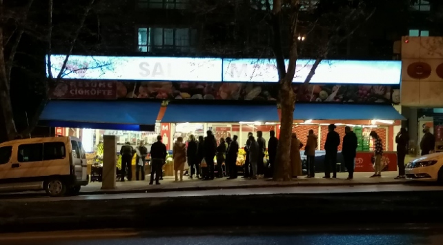 Samsun'da da Canik, İlkadım ve Atakum'da vatandaşlar, market, büfe, fırın, benzin istasyonu gibi alışveriş yapılabilecek yerlerin önünde uzun kuyruklar oluşturdu.