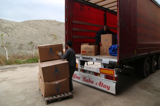 Şanlıurfa İnsani Yardım Platformu öncülüğünde Eyyübiye Belediyesi ile El Hayat Derneği'nin desteğiyle hazırlanan, içeresinde çocuk maması, temizlik malzemesi ve temel gıda maddeleri bulunan 2 tır, Suriye'ye uğurlandı.