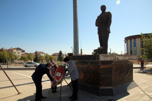 Şarkışla Milli Eğitim Müdür Vekili Osman Öztürk, 15 Temmuz Şehitler Meydanı'ndaki Atatürk Anıtı'na çelenk sundu.