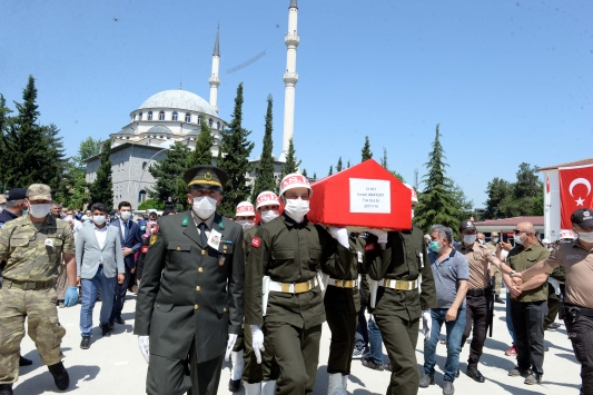 Şehidin Türk bayrağına sarılı cenazesi, Fevzi Çakmak İlkokulu bahçesinde hazırlanan alana getirildi. Şehit Anayurt, burada kılınan cenaze namazı sonrası şehitlikte toprağa verildi.