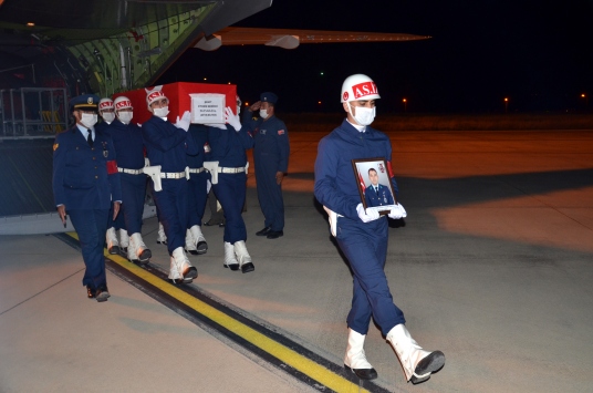 Askeri uçakla Merzifon Havalimanı'na getirilen şehidin Türk bayrağına sarılı tabutu, tören mangası tarafından cenaze aracına konuldu.