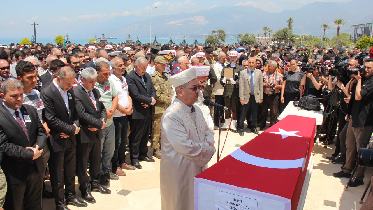 Piyade Uzman Çavuş Bican Kapılay’ın cenazesi, öğle vakti Hatay'ın İskenderun ilçesindeki Nihal Atakaş Camisi'ne getirildi.