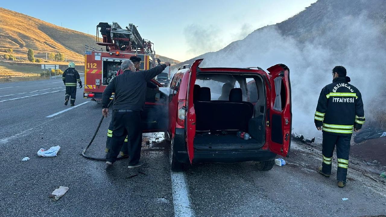 Erzincan-Gümüşhane kara yolundaki Ahmediye geçidinde seyir halinde ilerleyen araç yanarak kullanılamaz hale geldi.