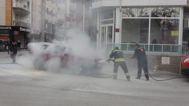 Antalya Caddesi'nde seyir halinde olan 42 ATY 97 plakalı otomobil, Ali Akkanat Caddesi üzerine geldiğinde motor kısmından alevler yükselmeye başladı.