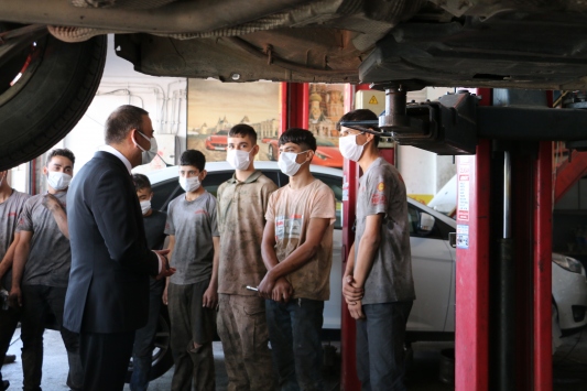 Vali Hacıbektaşoğlu, beraberinde İl Emniyet Müdürü Saruhan Kızılay ve AK Parti İl Başkanı Ekrem Olğaç ile Küçük Sanayi Sitesi'nde maske, mesafe ve hijyen denetimi yaptı.