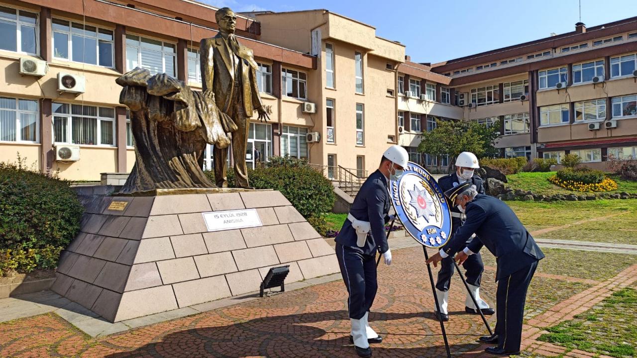 Ardından İl Emniyet Müdürü Cahit Şahin, Atatürk Anıtı'na çelenk sundu.