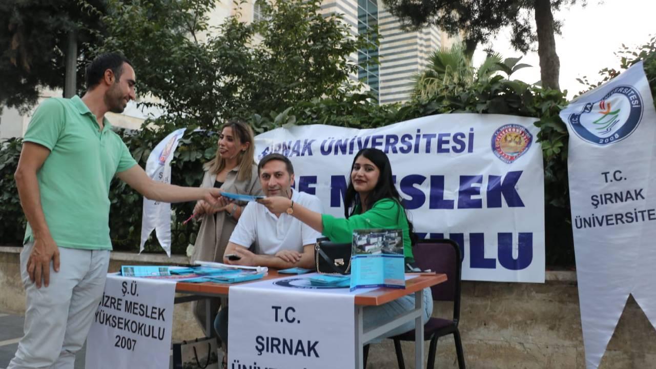Şırnak Üniversitesinin, ilçede kurduğu tanıtım standında, Bilgisayar Programcılığı Bölümü Öğretim Görevlisi Fuat Esmeray, Öğretim Görevlisi Dr. Kenan Donuk ile Sosyal Hizmet ve Danışmanlık Bölümü Öğretim Görevlisi Dr. Murat Gümüş, çeşitli bölümler hakkında öğrencileri bilgilendirdi.