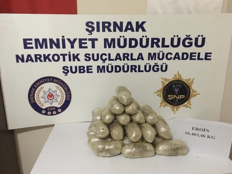 Şırnak Valiliğinden yapılan açıklamaya göre, İl Emniyet Müdürlüğü ve İl Jandarma Komutanlığı ekiplerince il genelinde 1-7 Haziran'da terörün finans kaynaklarından kaçakçılıkla mücadeleye yönelik düzenlenen operasyonlarda, 16 kilo 463 gram eroin, 4 kilo 443 gram metamfetamin, 2 bin 940 paket gümrük kaçağı tütün ve 10 cep telefonu ele geçirildi.