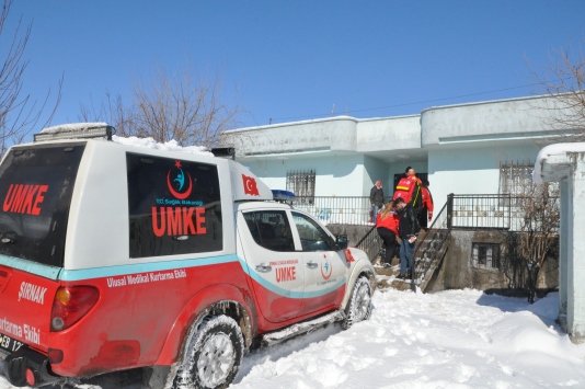 Yaklaşık 2 saat süren zorlu çalışmanın ardından paletli ambulansla köye ulaşan Ulusal Medikal Kurtarma Ekibi (UMKE) ve 112 Acil Servis ekipleri ilk müdahaleyi burada gerçekleştirdi.
