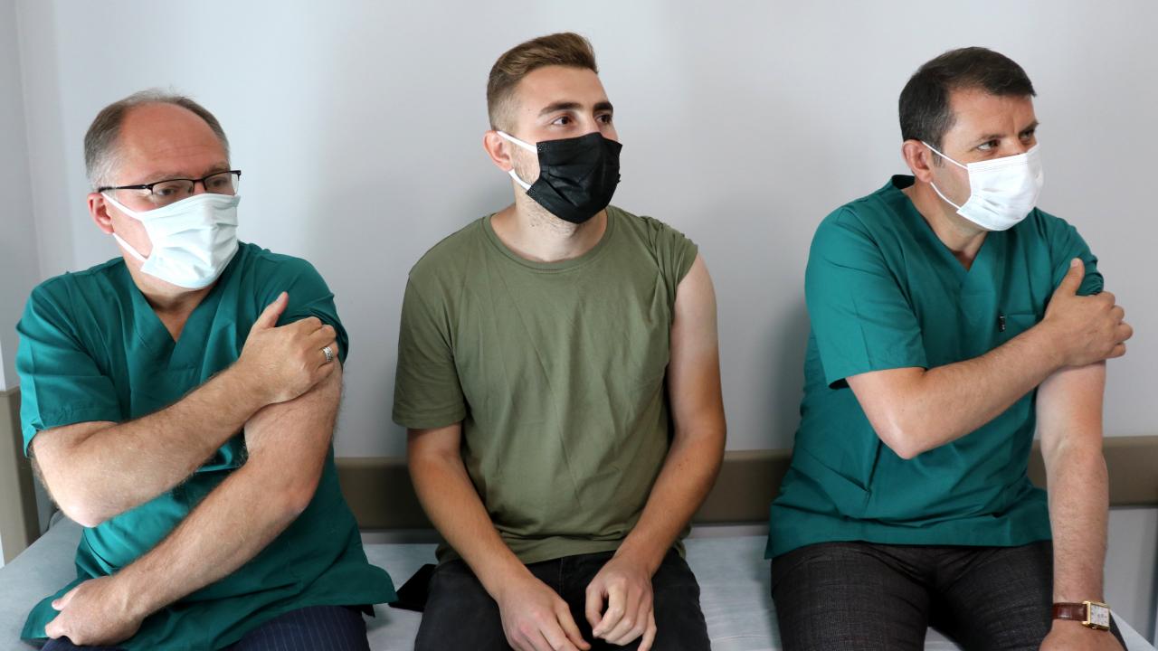 Bu arada aşı olmada tereddüt yaşayan bir haber ajansının muhabiri Onur Erden, Vali Ayhan ve Başkan Bilgin'in iknasıyla ilk aşısını yaptırdı.