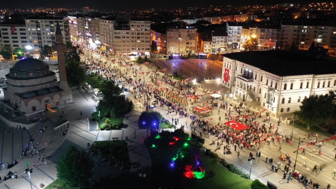 Tren Garı önünde başlayan fener alayı Cumhuriyet Meydanı'nda son buldu.