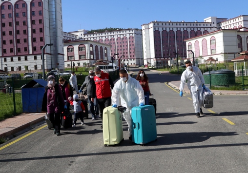 Sağlık kontrollerinin ardından vatandaşlar, önceden dezenfekte edilen otobüslerle memleketlerine uğurlandı.